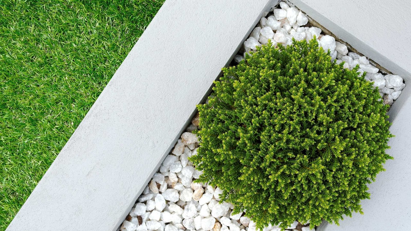 • Contrasting colors: You can create a modern landscape by combining the purity of white gravel stones with dark-colored borders.
